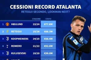 体育资讯7月22日讯 德国转会市场统计了亚特兰大出售球员的转会费,并列出榜单,霍伊伦居首,雷特吉、库普梅纳斯前三,而卢克曼可能在今夏离队上榜,预计转会费4000万到5000万欧元。