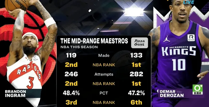 PG电子官方直营-中投王!中距离出手&命中数:德罗赞皆第一,英格拉姆皆第二