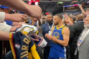 赛后,孟菲斯的球馆化身库里粉丝的海洋,库里面对大量的球衣根本签不过来,最后只能签一部分然后与球迷击掌示意。